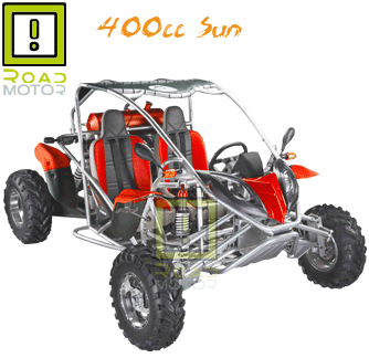 Buggy de 400cc con chasis de aluminio y suspensiones de gas regulables.